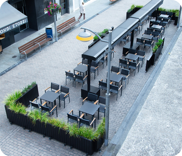 Eres restaurador y quieres separar tu terraza exterior de la vía pública y crear un espacio más acogedor y sostenible.